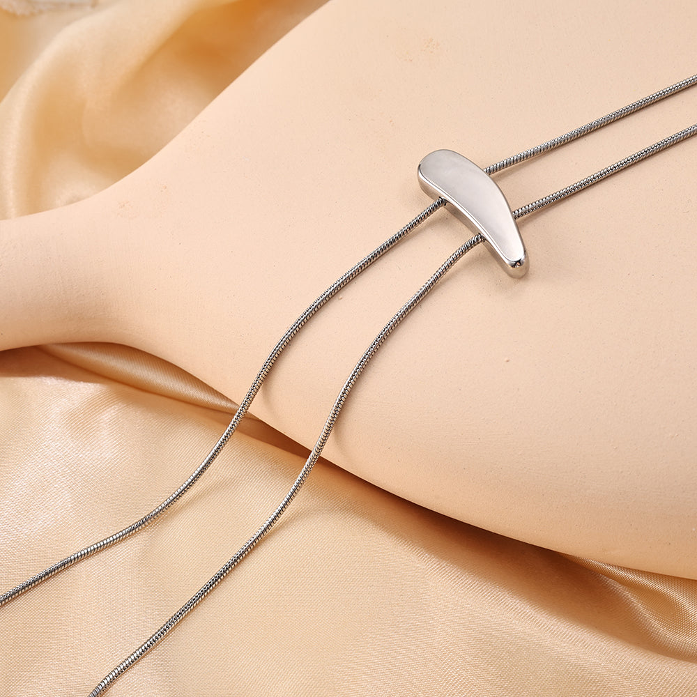 A sleek lariat necklace with a polished slider that lets you adjust the drop in seconds—minimal, modern, and versatile.