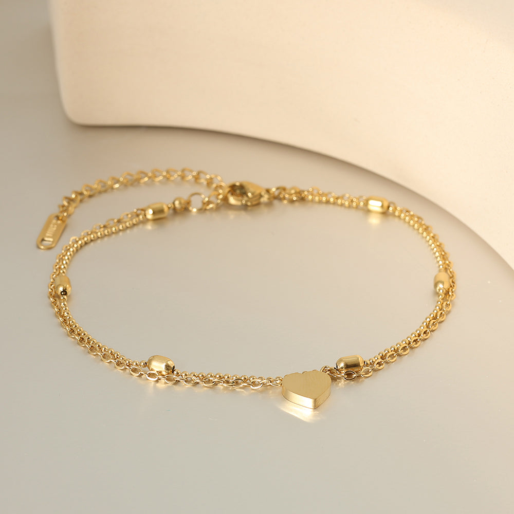 Beaded Heart Anklet – Gold (18.5 + 6.5 cm)