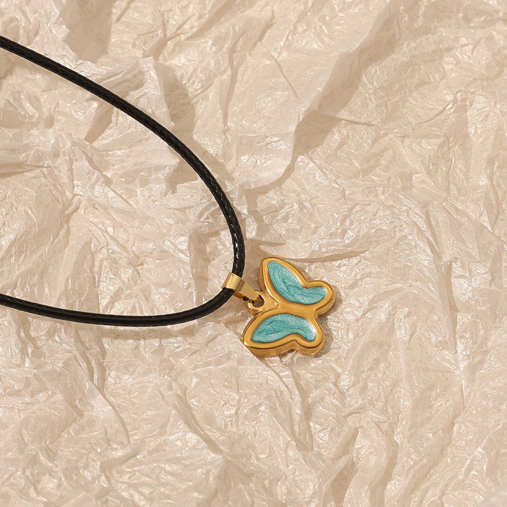 Enamel Butterfly Necklace (Blue or Yellow) – Gold (39.5 + 8 cm)