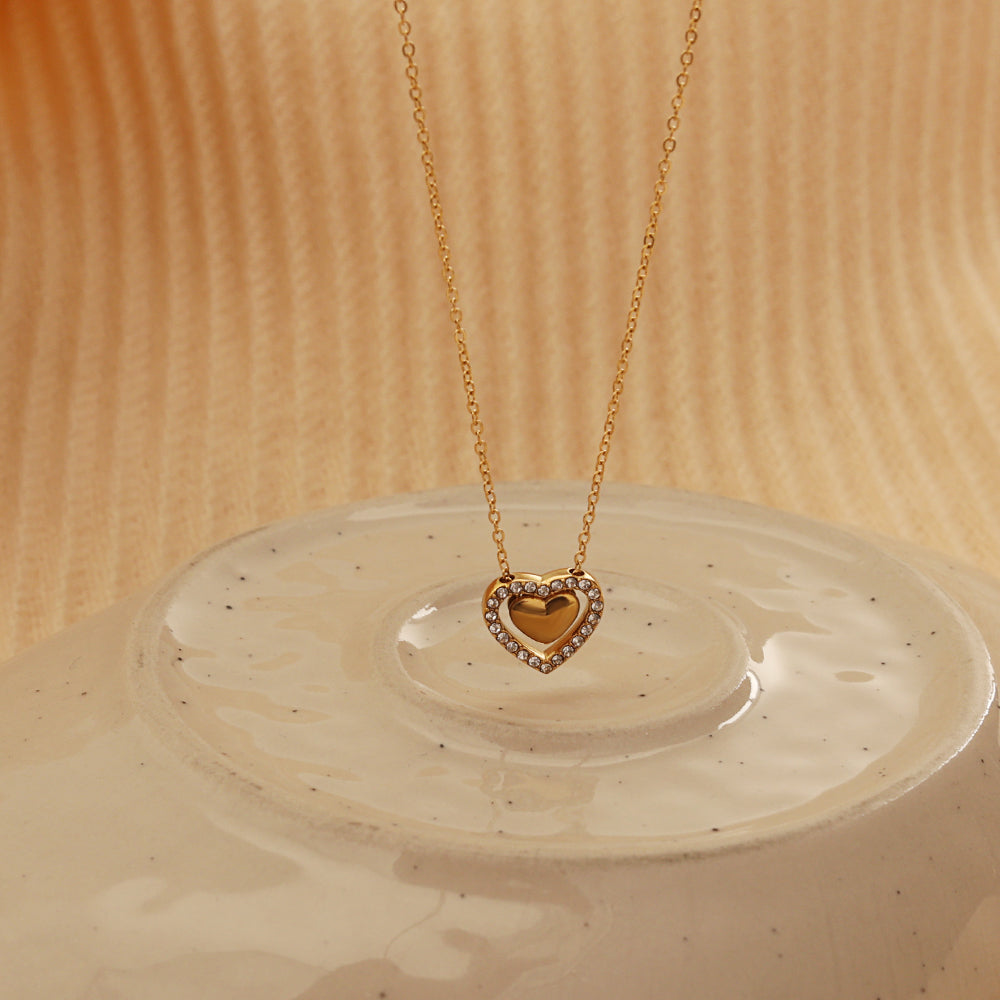 Polished heart pendant framed with tiny crystals—romantic, everyday sparkle.