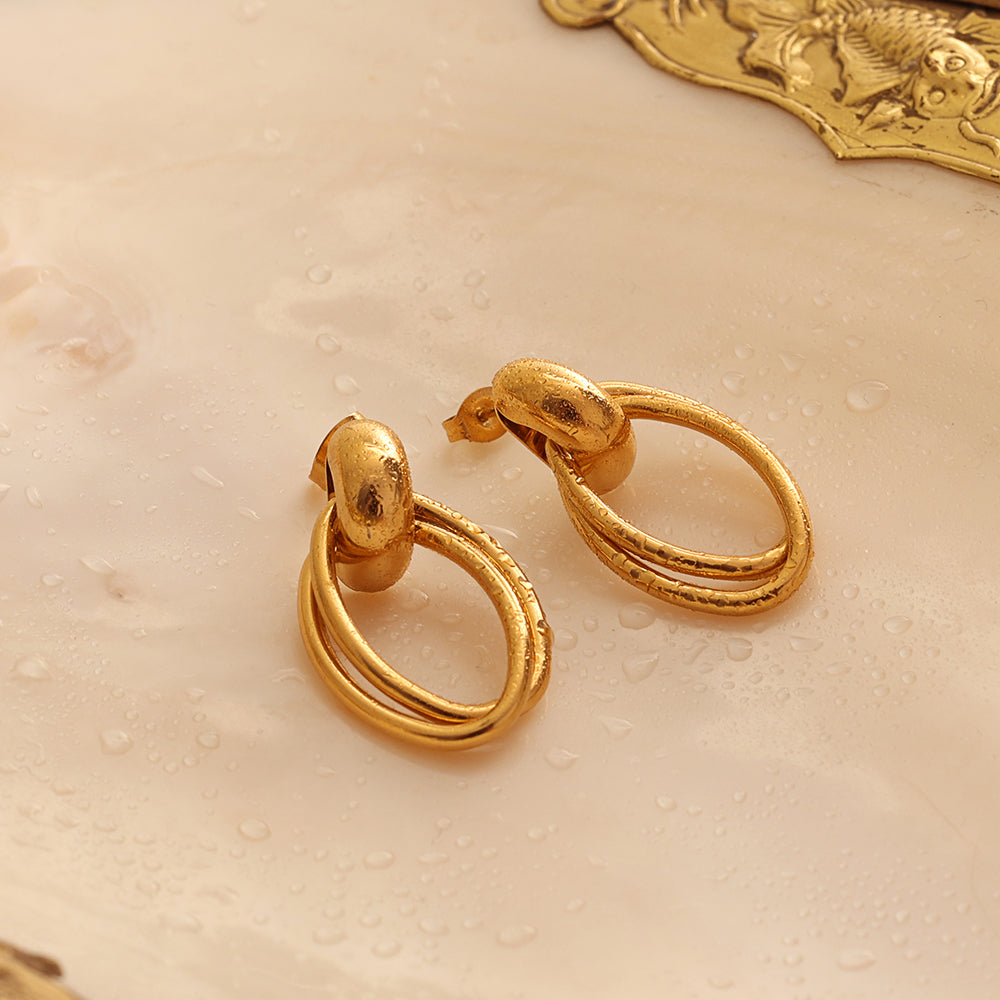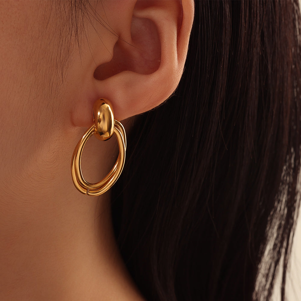 Polished teardrop links on huggies—minimal movement, elevated shine.