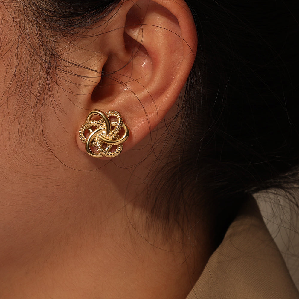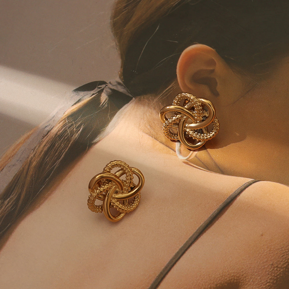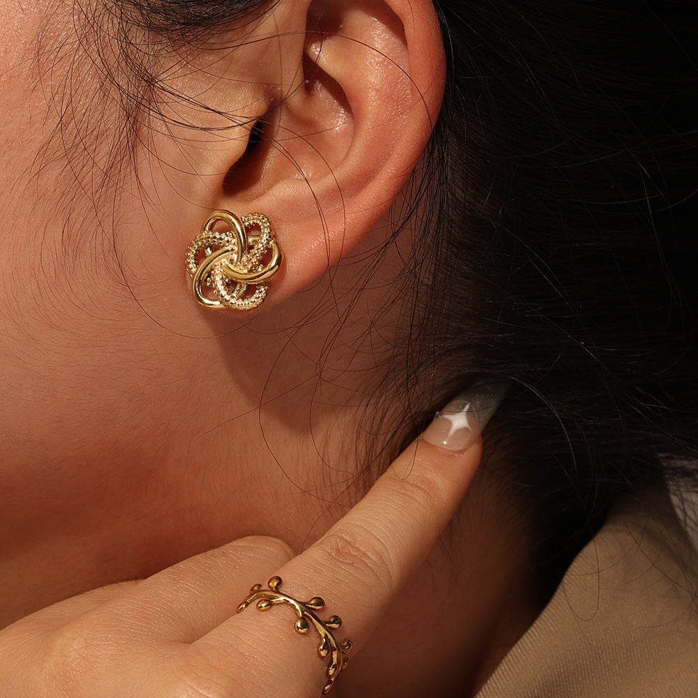 Mini knot huggies with subtle rope texture—small, chic, and easy.