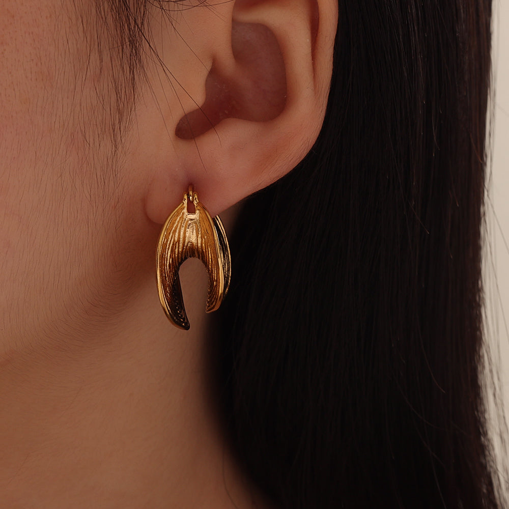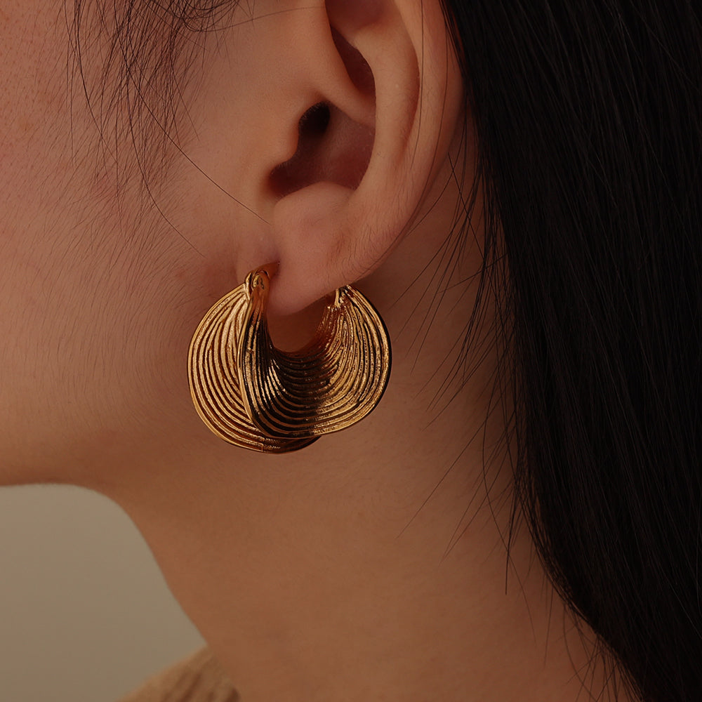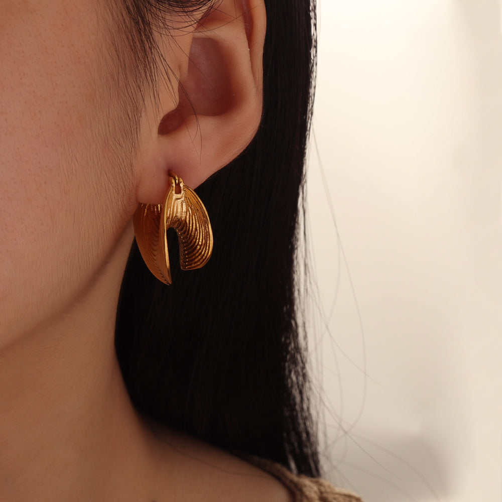 Curved huggies with wave-ridge texture—clean shine for daily wear.